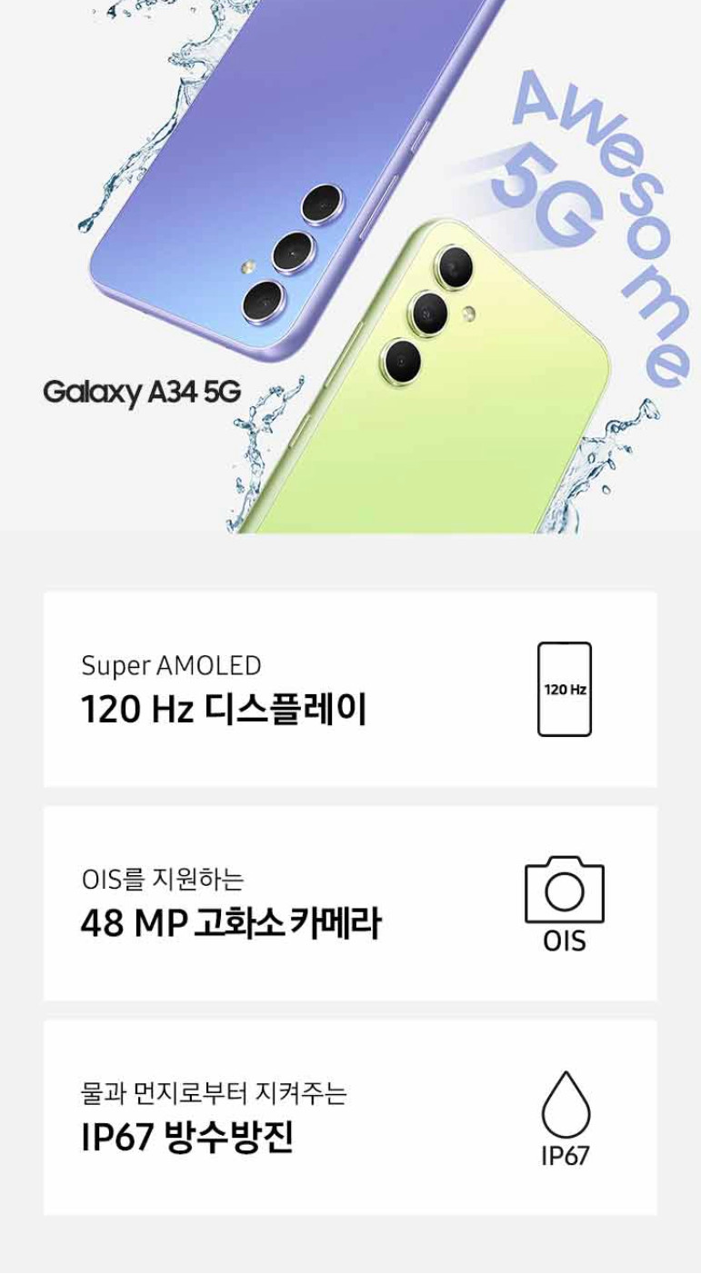 [삼성] 갤럭시 A34 (128G) 공기계 알뜰폰, 3사호환 당일출고