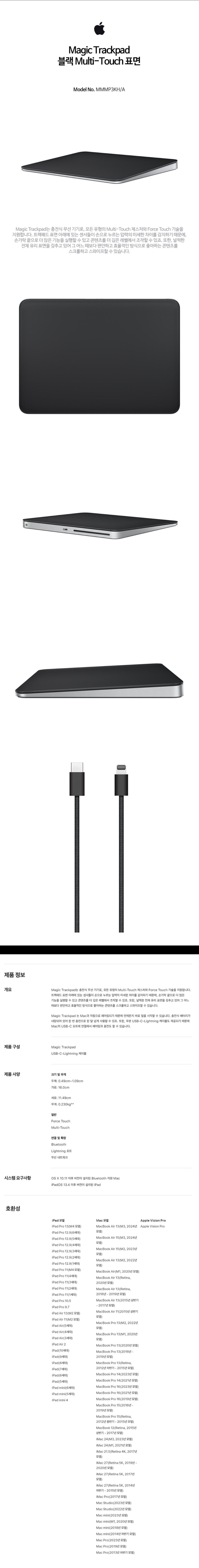 MMMP3KH/A / 터치패드 / 무선 / 내장 배터리 / 정전식 / 블루투스 / 센서 : APPLE / 114.9mm / 160mm / 10.9mm / 230g