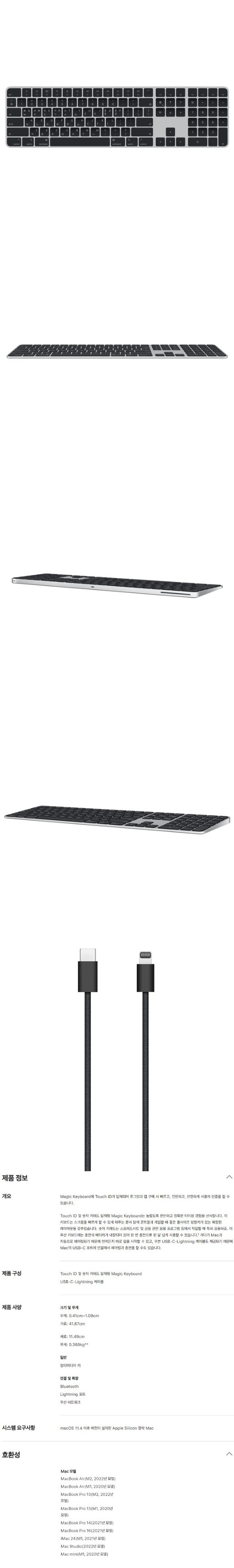 MMMR3KH/A 매직키보드 / ※ 본 키보드는 Touch ID 기능이 탑재되어 있으나, Touch ID는 **Apple Silicon(M1/M2/M3 등) 기반 Mac에서만 사용 가능합니다. 인텔 기반 Mac에서는 일반 키보드 기능만 사용 가능하오니 참고 바랍니다.
