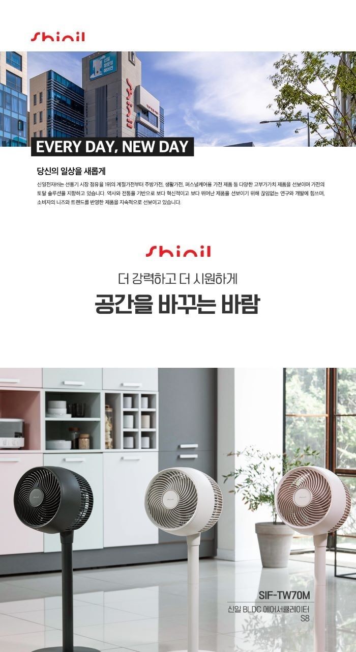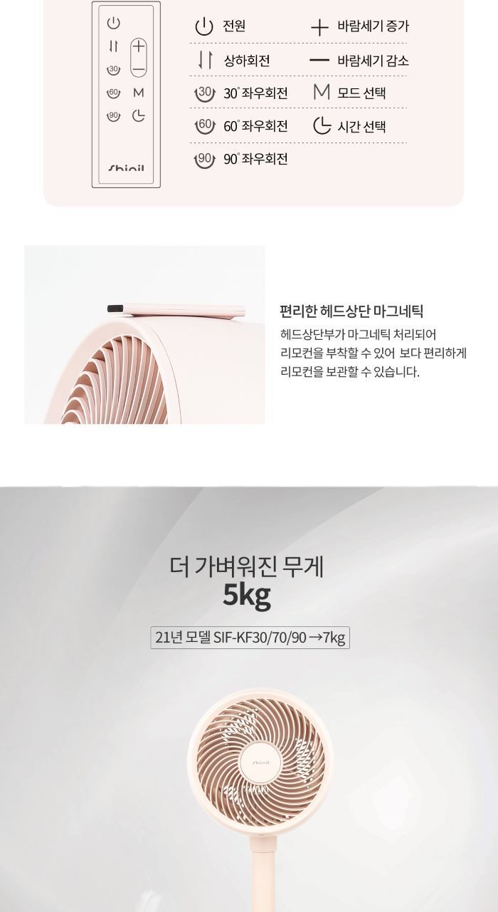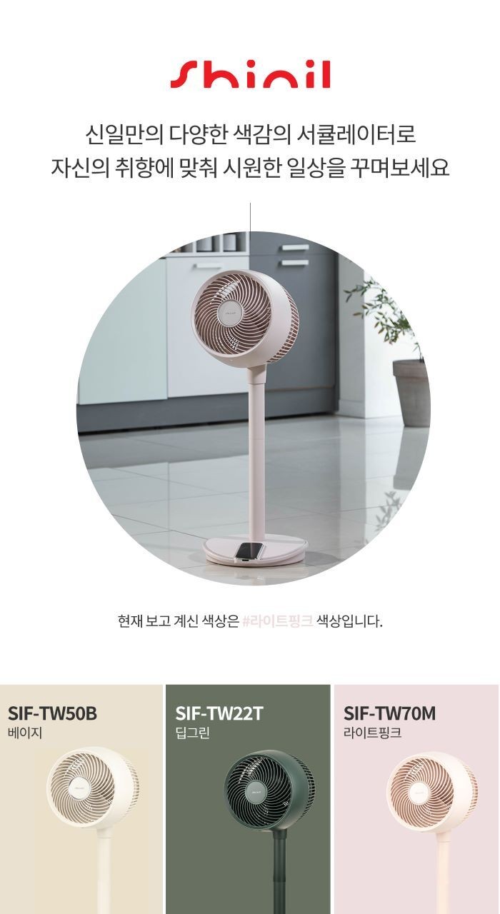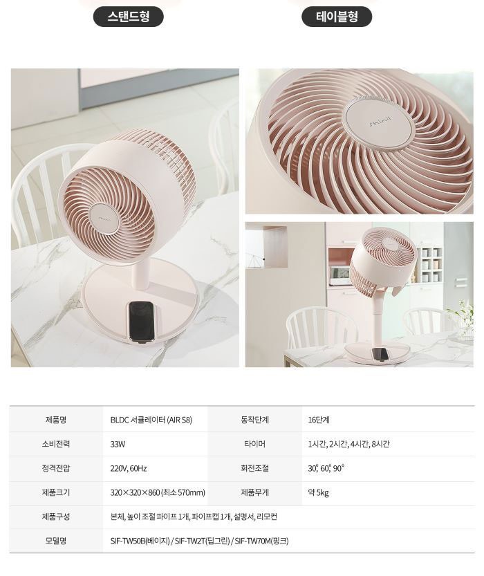 SIF-TW70M / 서큘레이터 / 스탠드형 / 유선 / BLDC모터 / 바람 : 16단 / 초미풍(유아풍) / 터보풍 / 에코풍(자동풍속조절) / 날개 : 22.5cm(8.9인치) / 3엽날개 / 좌우회전 / 상하각도조절 / 3D입체회전 / 높이조절(분리형) / 타이머 / 리모컨 / [편의] 분리형안전망 / 연결봉거치대 / 크기(가로x세로x깊이): 320x570(860)x320mm