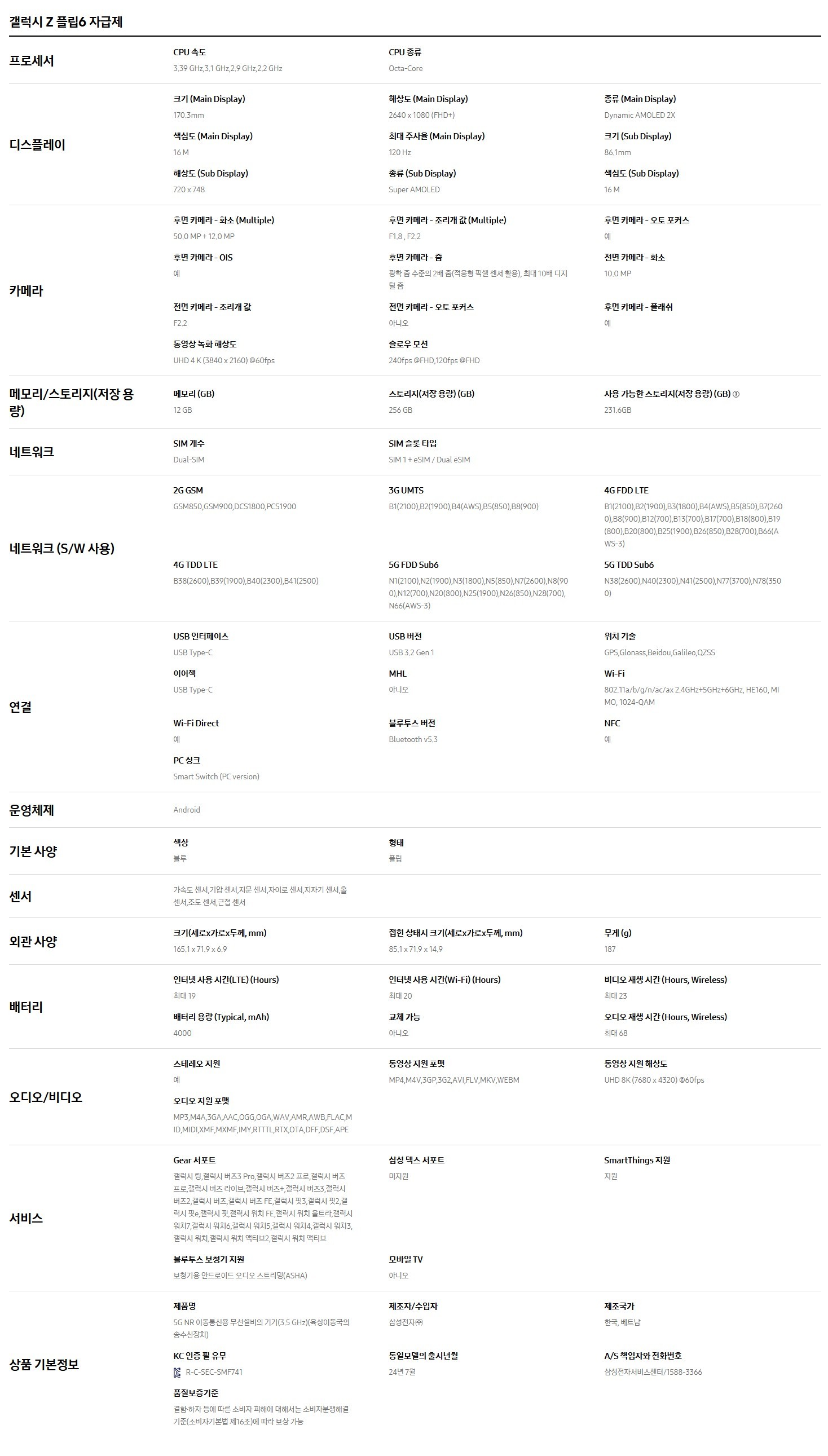 | 모델명 | SM-F741 | 출시연월 | 24년7월 |