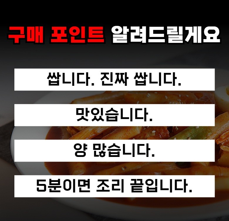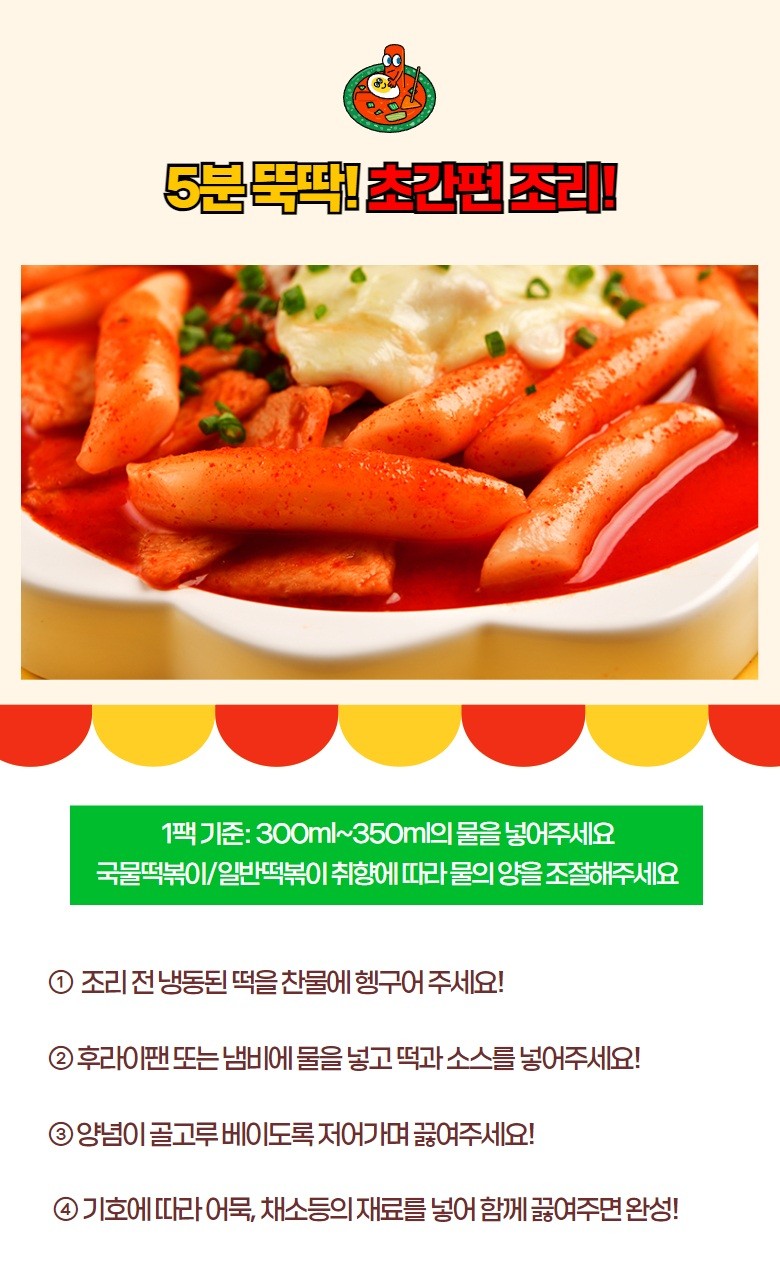 1+1 구성에 만원 이하의 가격으로 가성비로 푸짐하게 즐겨보세요! 집에서 간단히 5분이면 완성되는 쫄깃한 밀떡볶이, 바쁜 일상 속 든든한 간식으로 제격이에요. 집에서 간단히 5분이면 완성할수 있어요~!!
