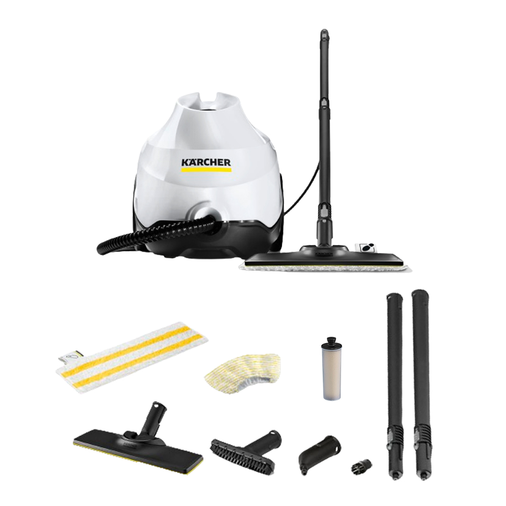 SC3 easy Fix / 스팀청소기 / 일반형 / 스팀전용 / 유선 / 고온살균 / 이동바퀴 / 가열시간 : 30초 / 분사압력 : 3.2bar / 무게 : 3.2kg / 브러쉬: 집중분사, 핸드, 바닥, 솔형, 연장관 / 크기(가로x세로x깊이): 236x253x360mm