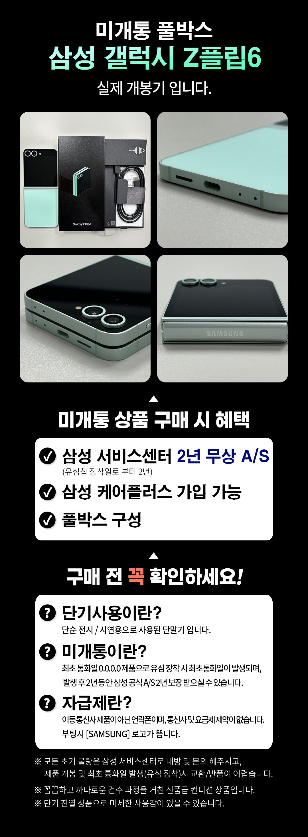 SM-F741 갤럭시Z플립6 256G / 자급제 / 단순개봉/ 풀박스 패키지 / 미개통 상품