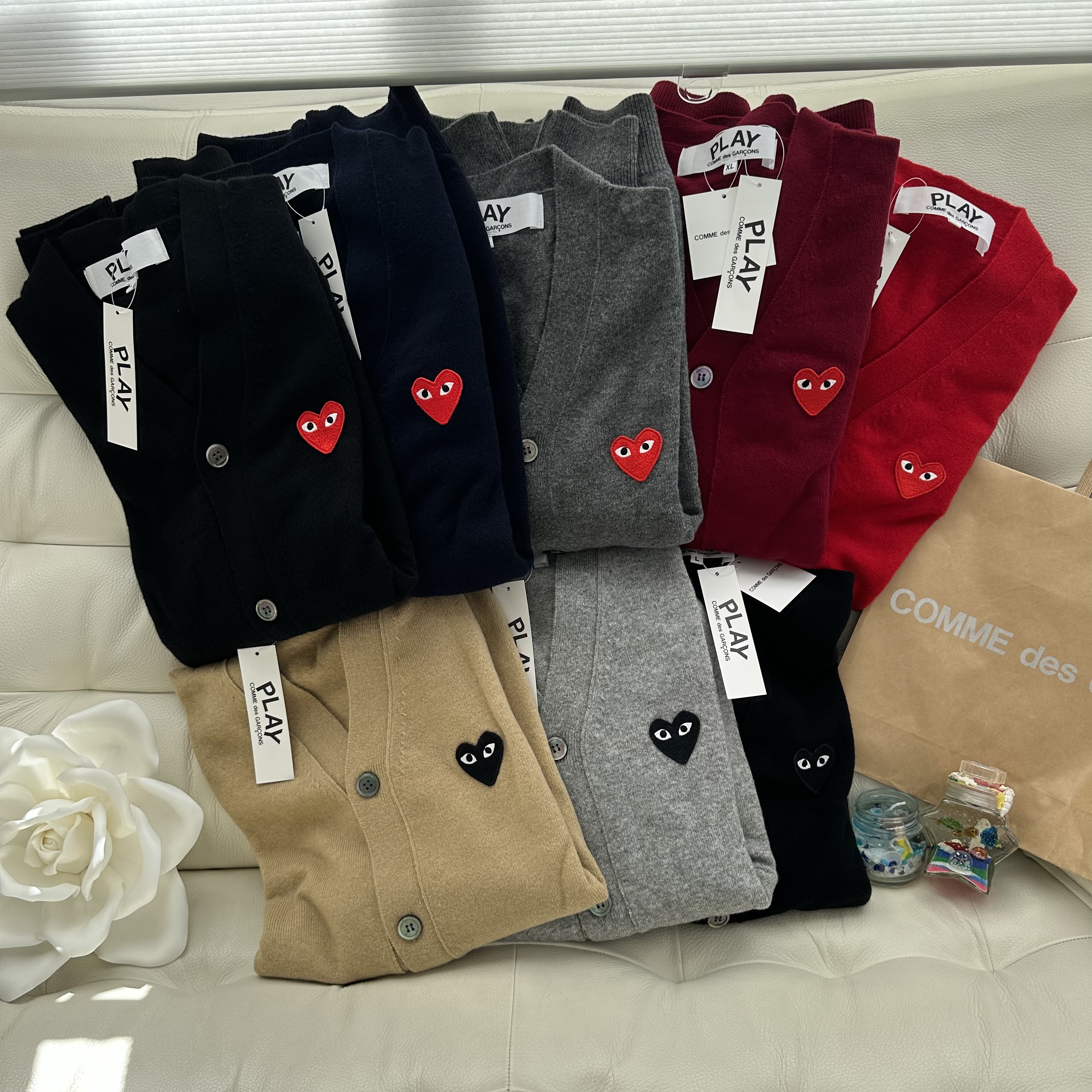 상단의 꼼데가르송 하트 와펜 로고로 포인트를 주었어요! 프리미엄 울 100%의 소재로 부드럽고 보온성까지 같이 챙겼어요~! 레이어드하거나 단품으로 입기에도 좋고 브이넥과 라운드넥 2종류로 원하는 디자인으로 뉴퍼마켓에서 만나보세요!