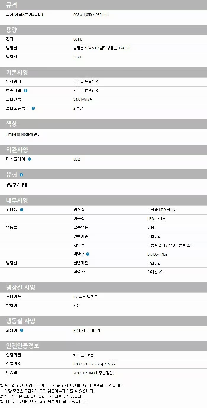 대형가전의 경우 설치장소 협소로 인한 설치 불가시 배송물류비는 고객님께서 부담하셔야 합니다. (구매전 사이즈확인 필수)