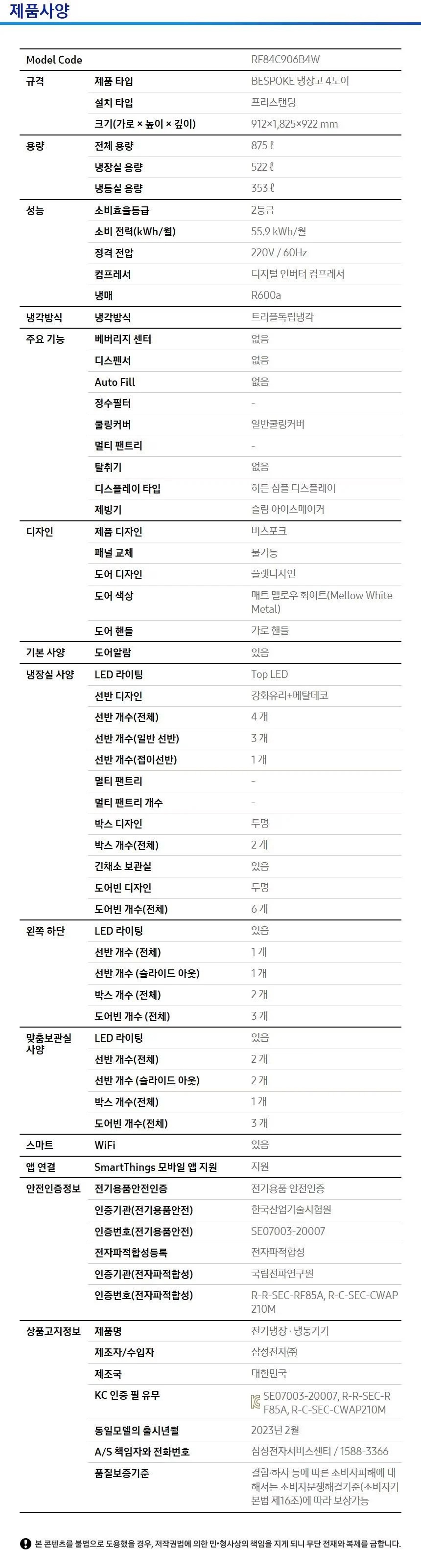 삼성 비스포크 4도어 800L 이상 / 수도권 일부 지역 무료배송 / 폐가전 무료수거