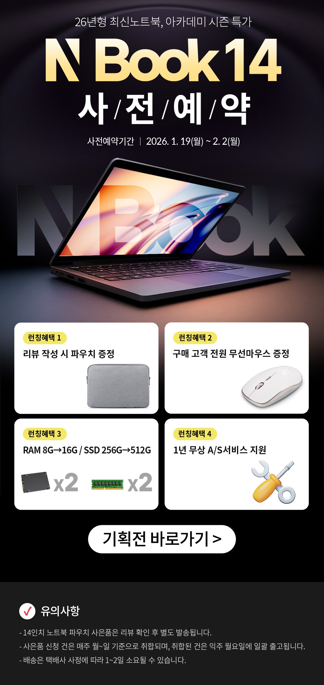 | 모델명 | N-book14 | CPU | 인텔프로세서N100 |