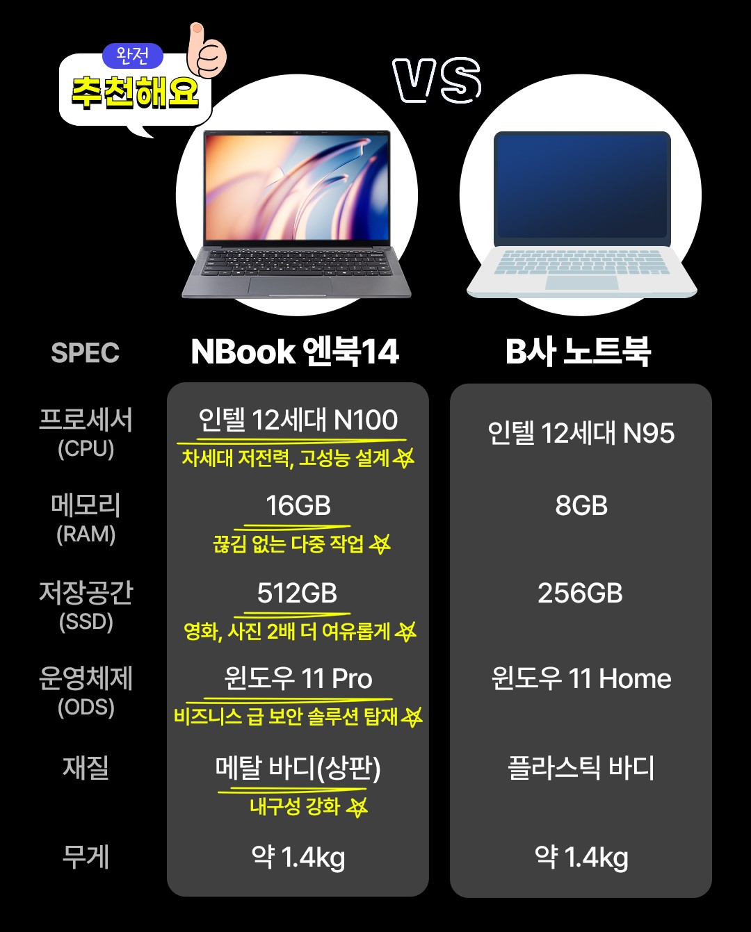 NBook 14 (인텔 N-시리즈/DDR4-16G/SSD 512G/인텔 UHD Graphics/윈도11PRO/메탈 그레이/14인치/1920x1080(FHD)/1.4kg/새상품)