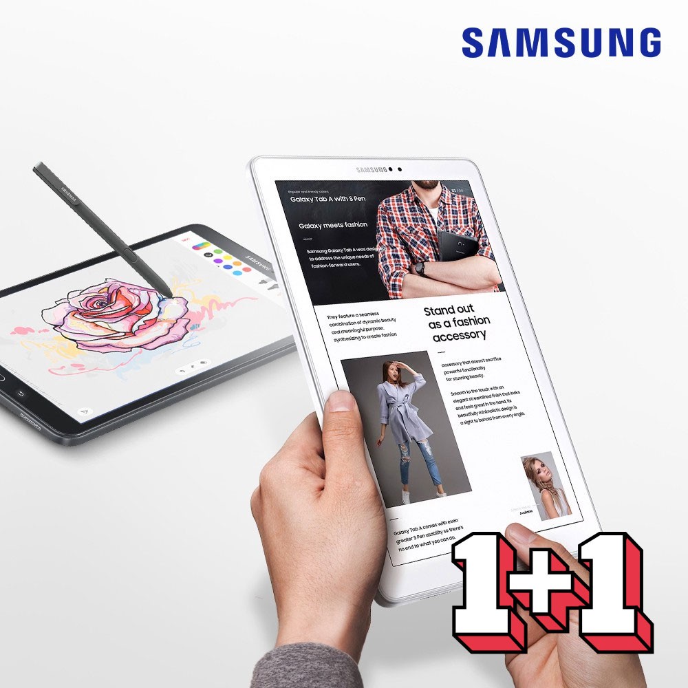 1+1 특가상품★ 대화면 디스플레이! 어디에서나 편리하게 휴대가 가능한 554g의 무게를 자랑하는 삼성 갤럭시탭 A6를 런칭하였습니다~ S펜도 같이 제공되어 언제 어디서든 떠오르는 아이디어를 기록해 보세요 (。・∀・)ノ゙