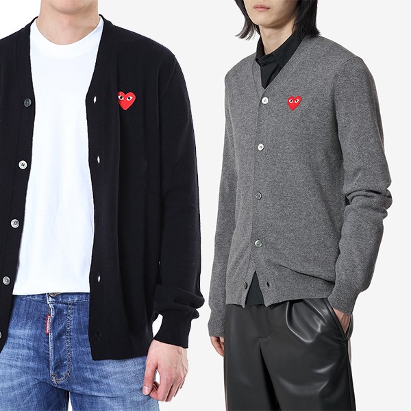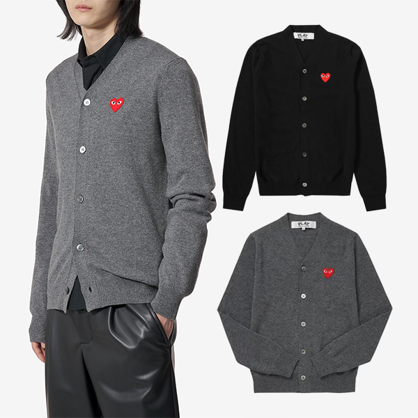 [마진포기] 꼼데가르송 남녀공용 하트패치 브이넥 울 가디건