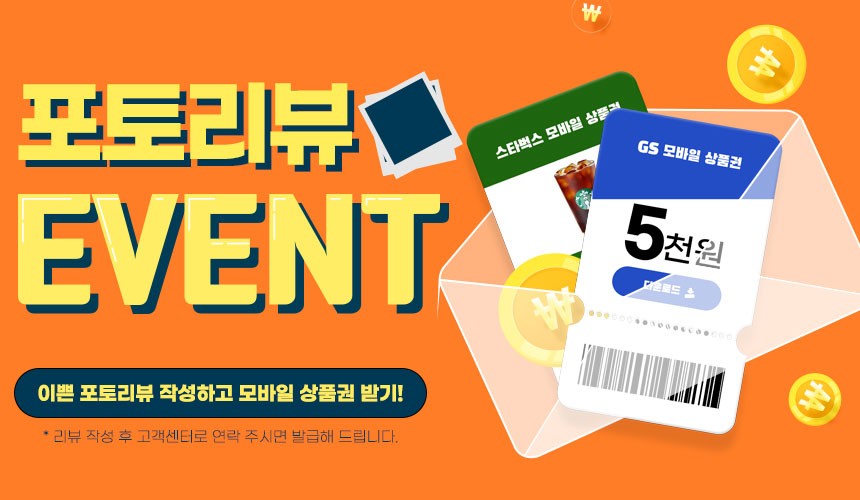 10만원 이상 상품 선착순 5개 포토리뷰 중 선정