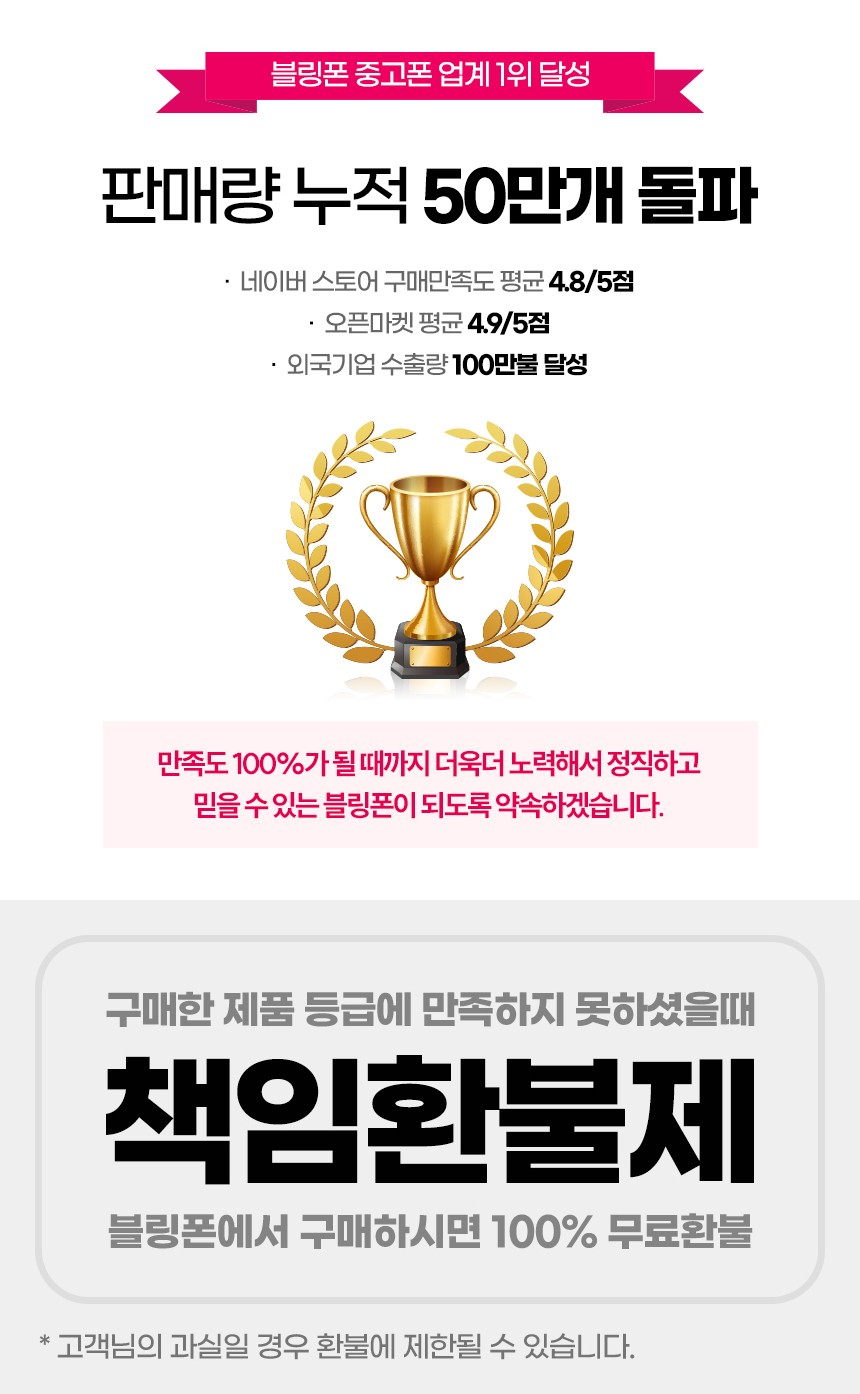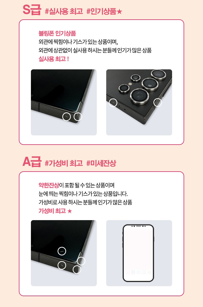 A급리퍼/해외리퍼 제품의 경우 눈에 띄지 않는 미세한 액정 멍, 불량화소로 인한 교환 및 단순변심 반품은 불가합니다.