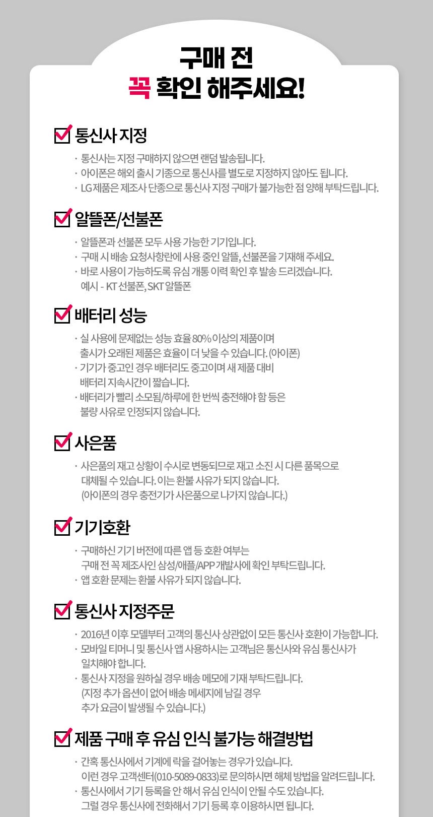 배터리는 소모성 제품으로 완충되지 않을 수 있습니다(충전게이지 50%이상시 단순변심 환불불가)