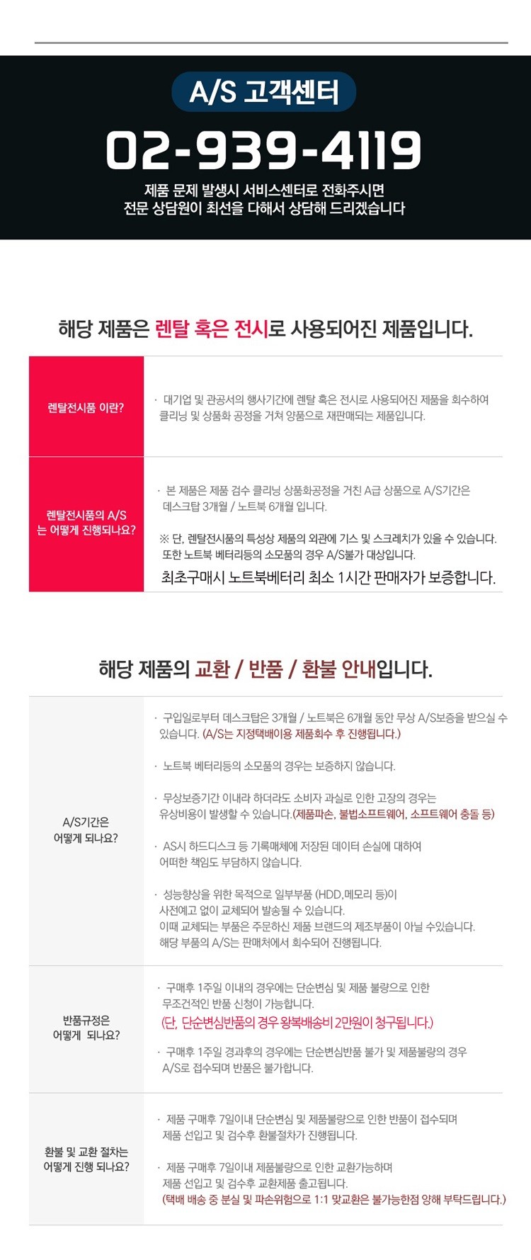 유/무상AS 처리 중 고객의 동의하에 동일성능 혹은 동일성능 이상의 타모델로 교환처리될 수 있습니다.