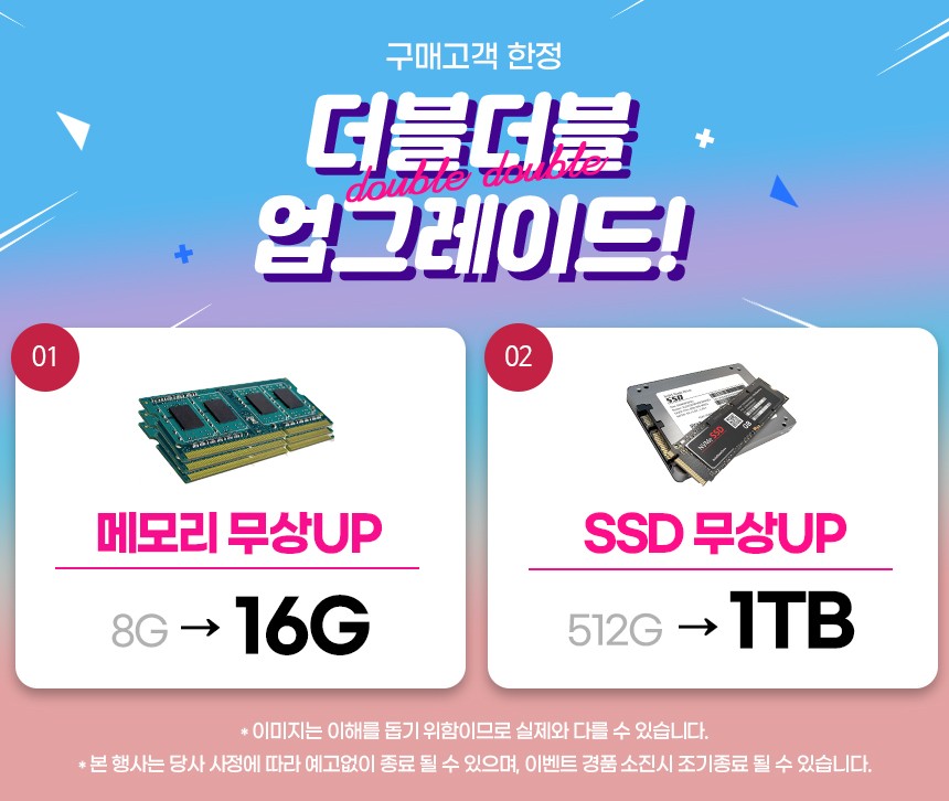 램, SSD 등 부품의 경우 성능 향상 등을 목적으로 타브랜드 상품으로 교체 출고 될 수 있습니다.
