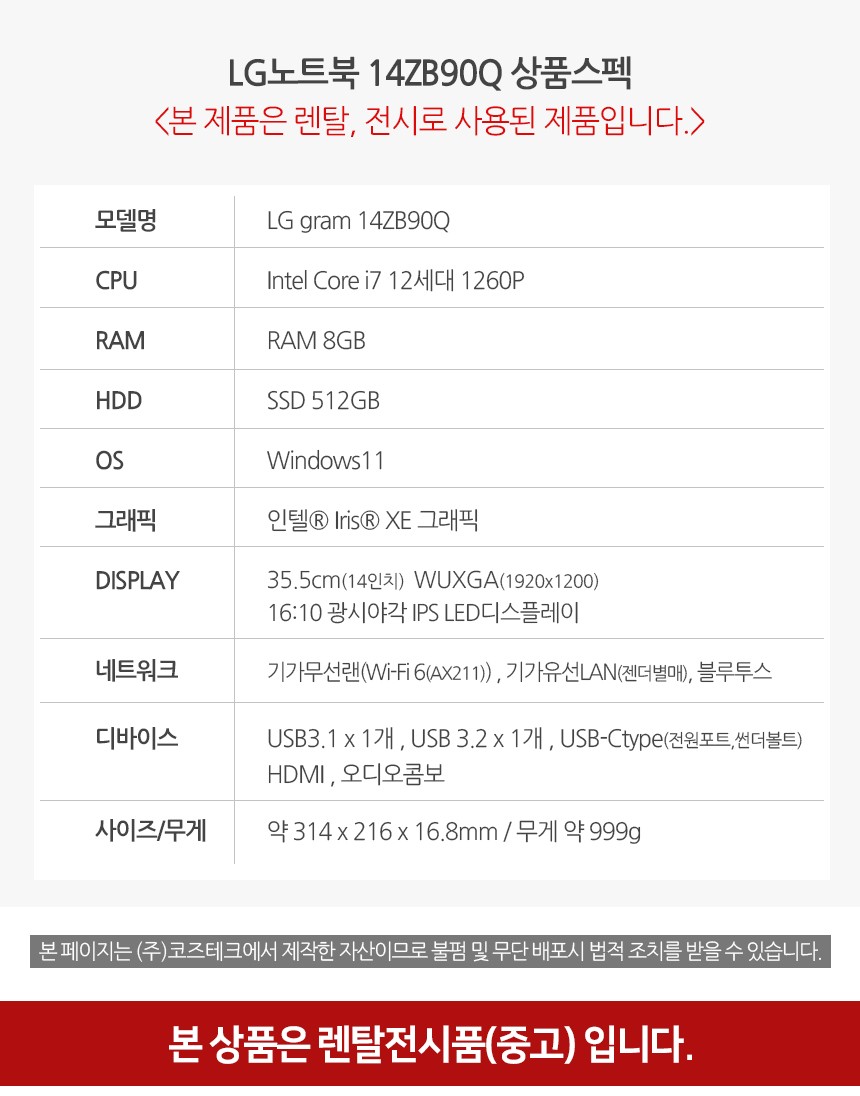 14ZB90Q(i7-1260P/램 16G/SSD 512G(256G+256G)/인텔 Iris Xe/윈도11HOME/A급리퍼)