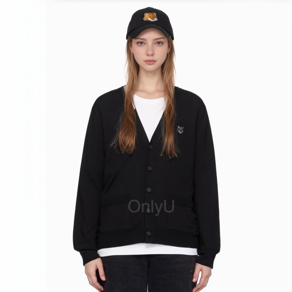 클래식한 브이넥 디자인에 메종키츠네 로고로 감성을 더했어요! 피부 자극없는 메리노 울 소재의 가디건으로 출근룩이나 데이트룩, 일상룩으로도 추천드려요~!!