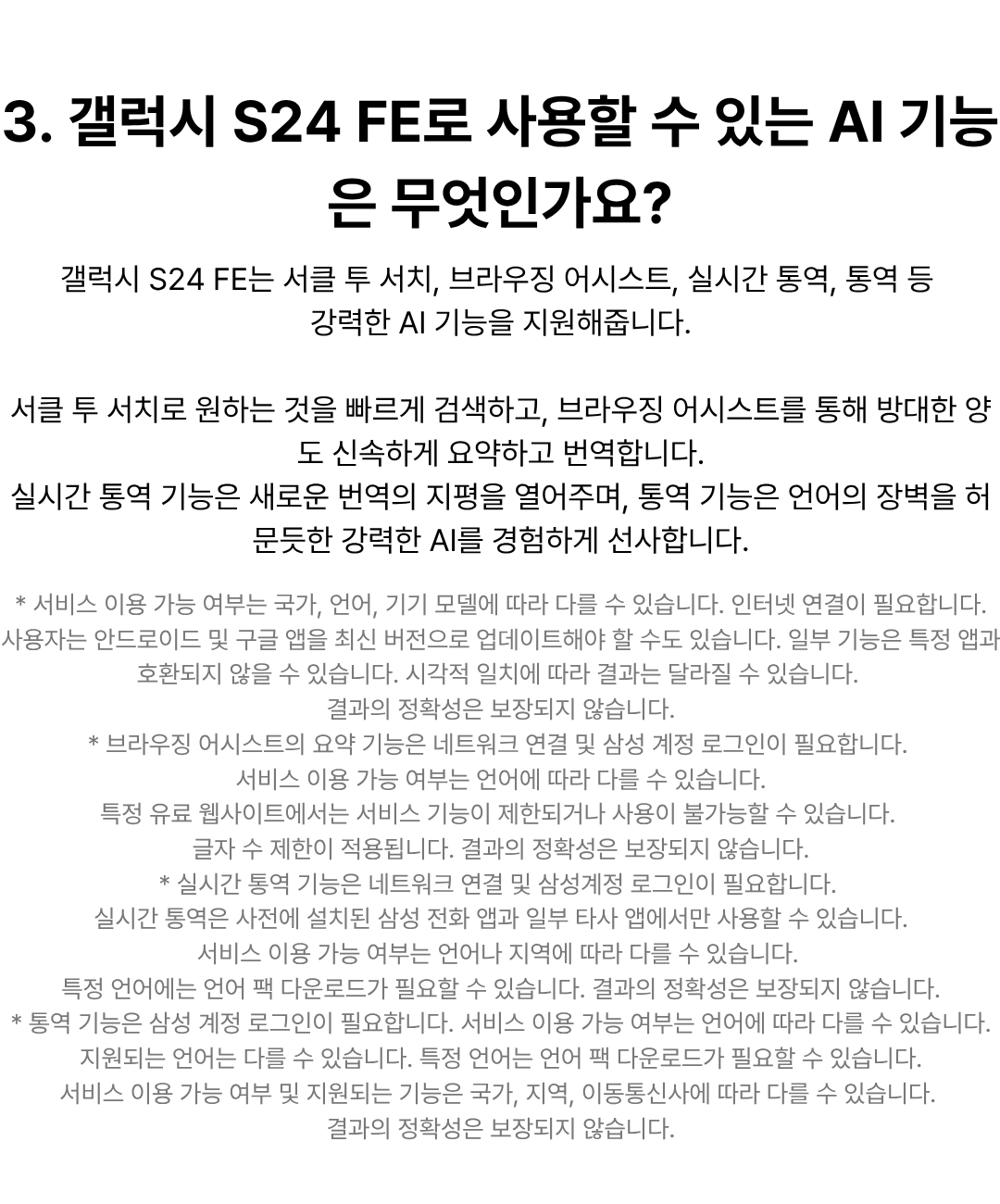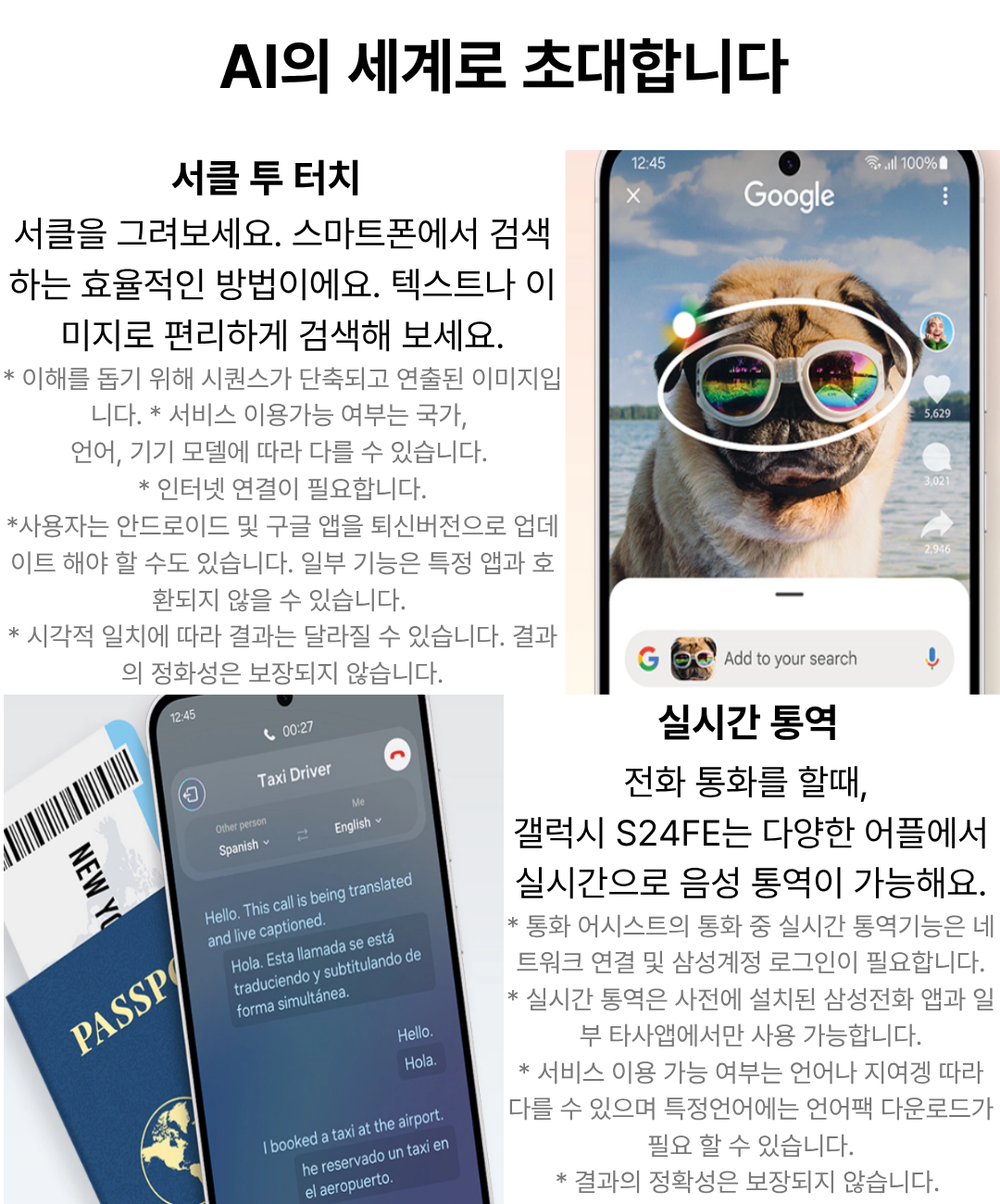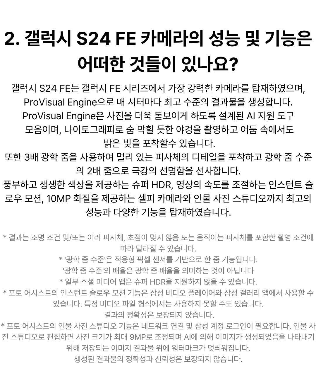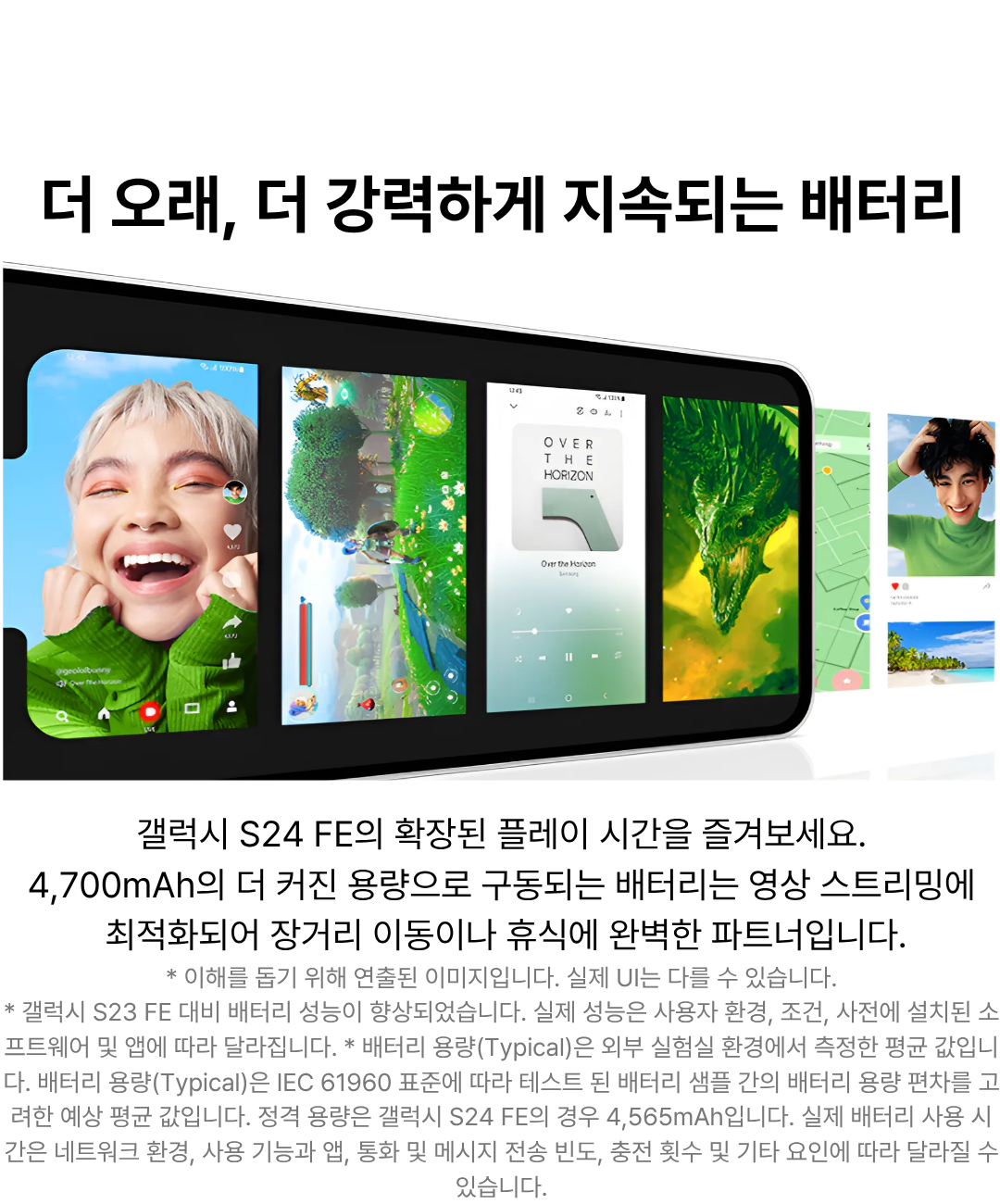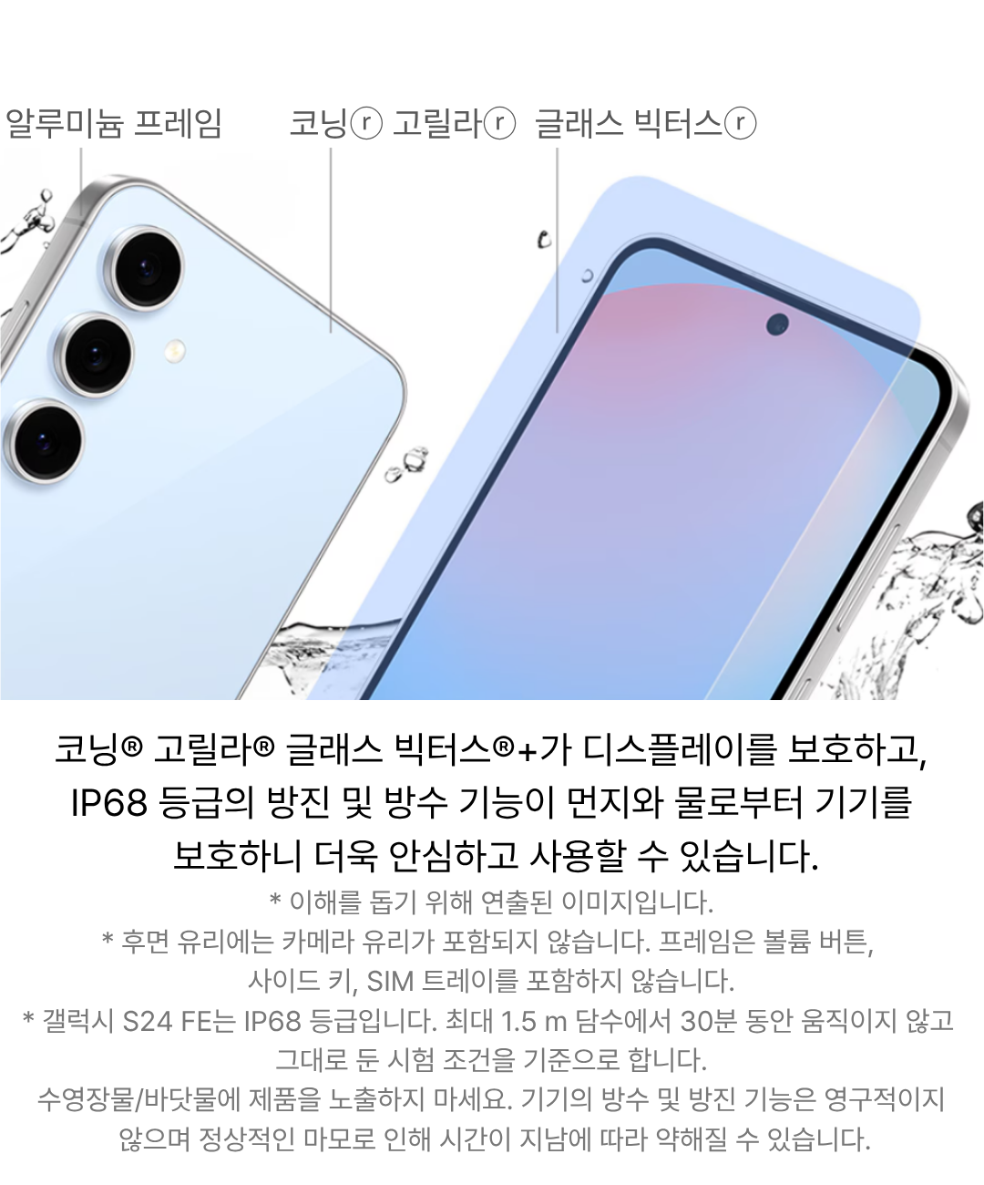 S24 시리즈의 디자인 헤리티지를 계승하면서도 가격 부담 낮춤으로 가성비를 극대화 한 모델로 슈퍼 HDR, 인스턴트 슬로 모션 등으로 일상의 순간을 프로처럼 기록가능하며, 프리미엄 기능을 부담 없이 즐길 수 있는 최고의 선택 갤럭시S24FE입니다. 지금 바로 당신의 일상을 AI로 업그레이드하세요!!!
