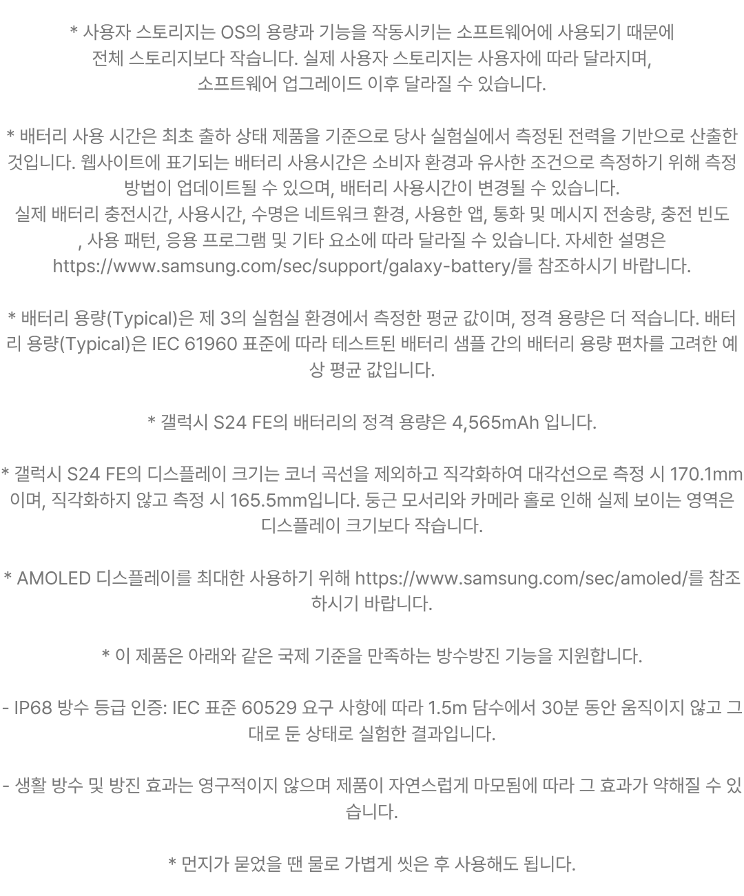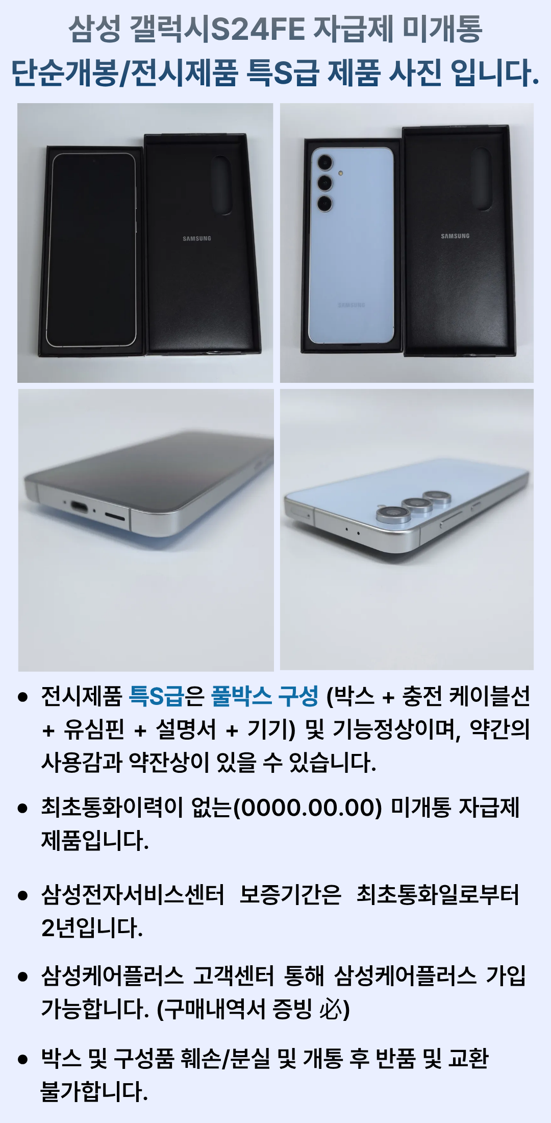 [전시제품/단순개봉] 갤럭시S24FE (외관상태 S급/특S급)