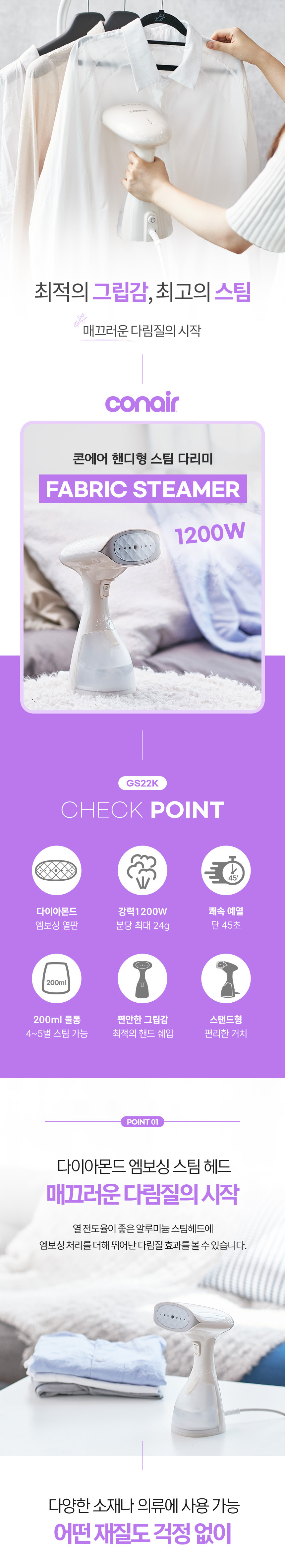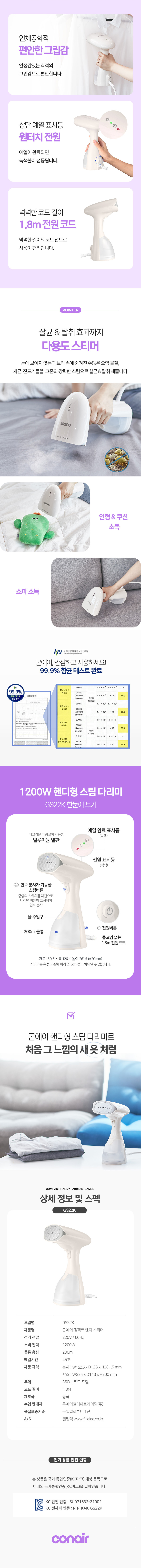 컴팩트 강력 핸디형 스팀다리미 GS22K 휴대용 여행용 살균/탈취