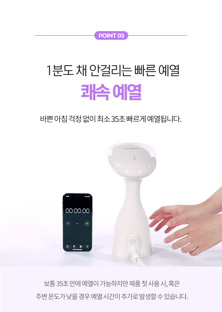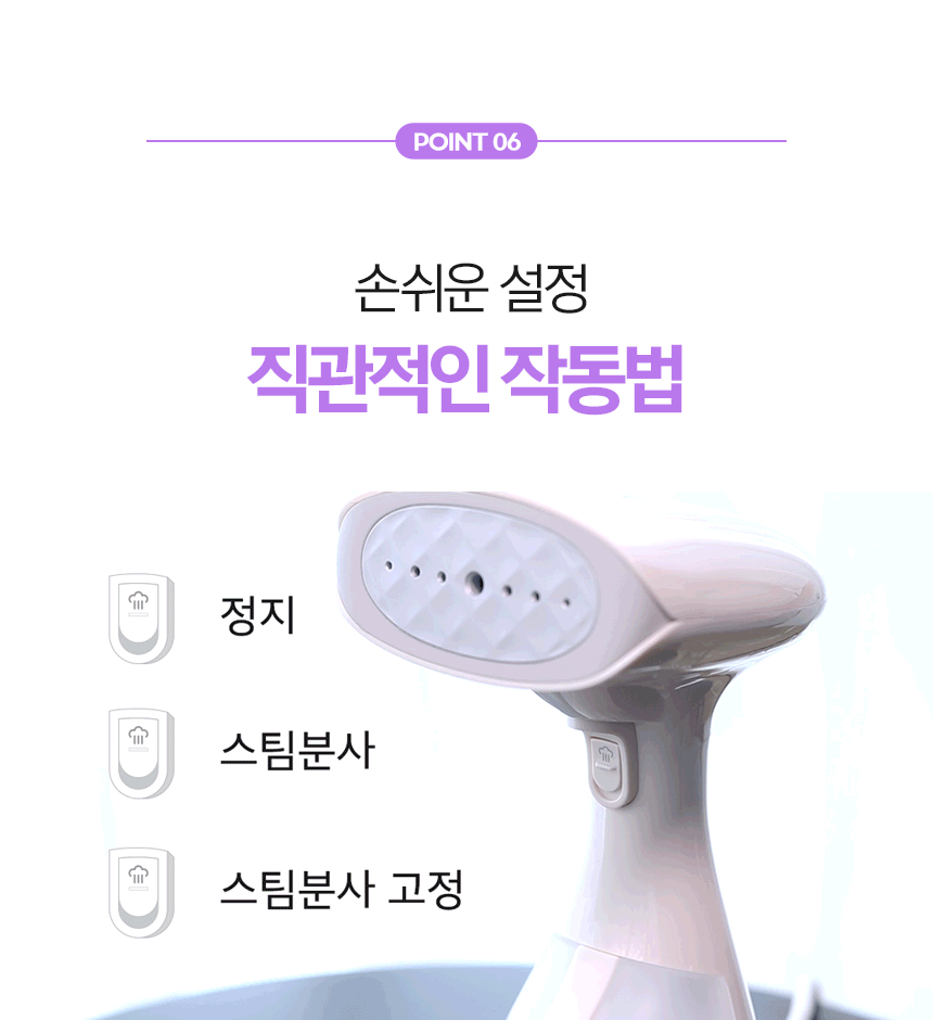 출근 전 35초만에 새옷처럼!! 강력한 스팀분사로 어떤 재질도 걱정없이 옷장속 다양한 옷들에 사용가능해요! 살균 탈취효과로 깔끔하고 단정하게 관리할수 있어요