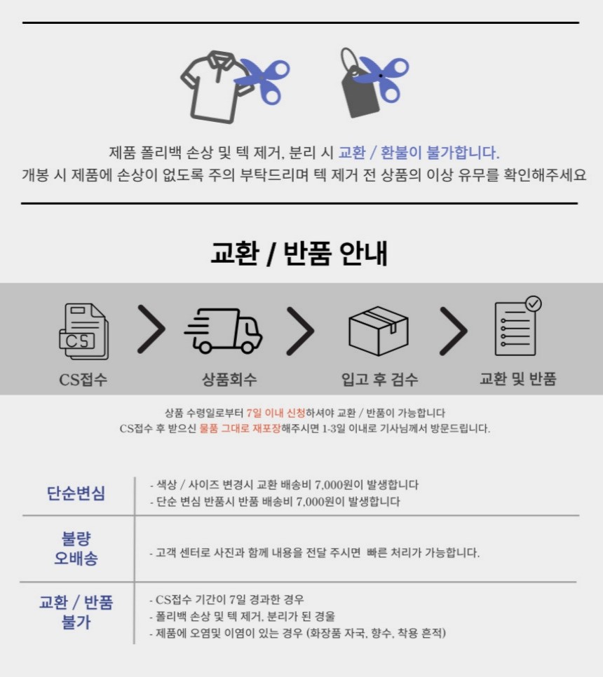 ※배송완료 후 7일까지 변심 반품이 가능합니다. 이후 변심반품 불가합니다.