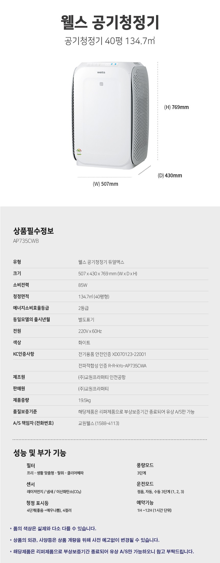 유/무상AS 처리 중 고객의 동의하에 동일성능 혹은 동일성능 이상의 타모델로 교환처리될 수 있습니다.