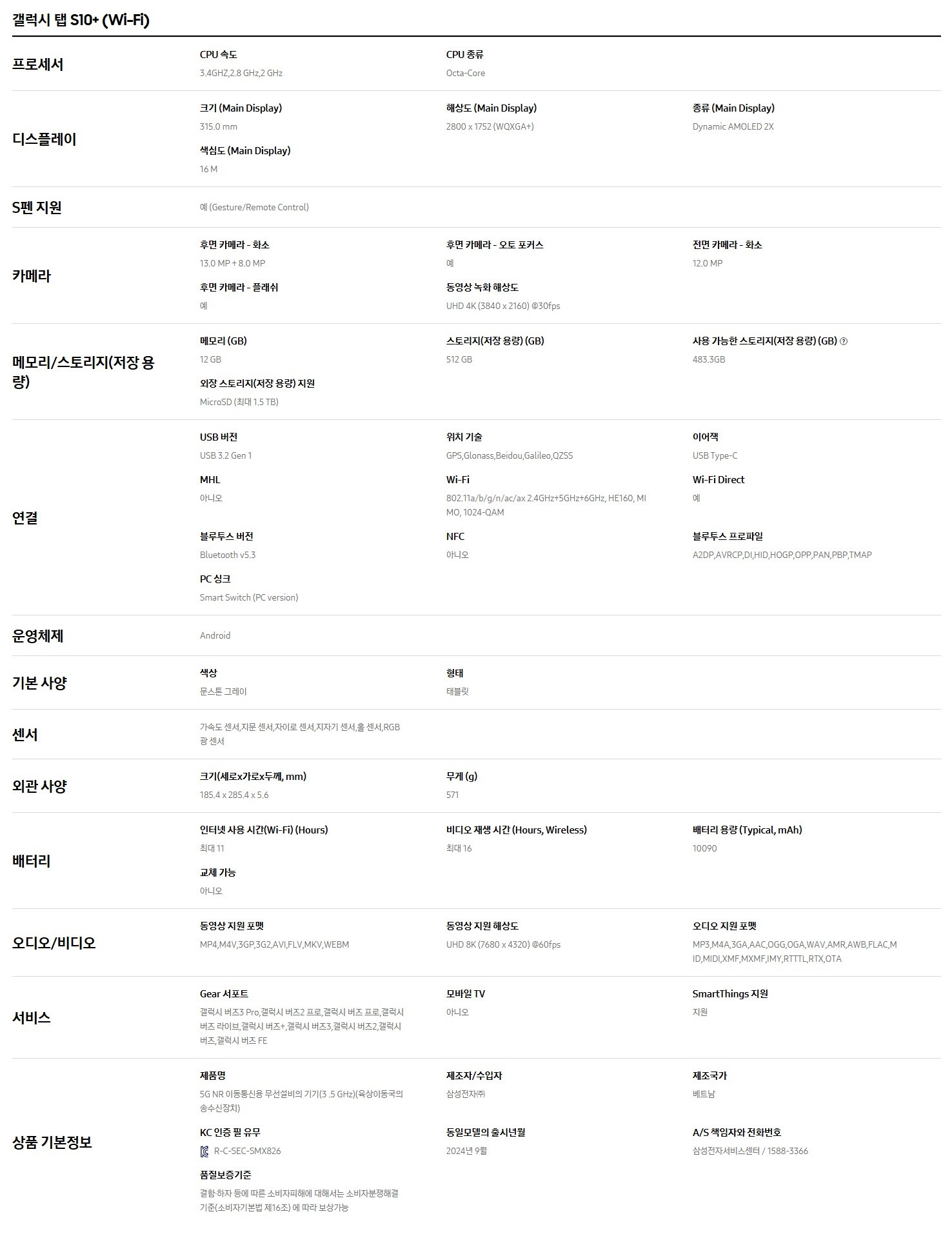 삼성 갤럭시탭S10플러스 5G 256G 중고 [태블릿(본품)+정품 S펜구성]