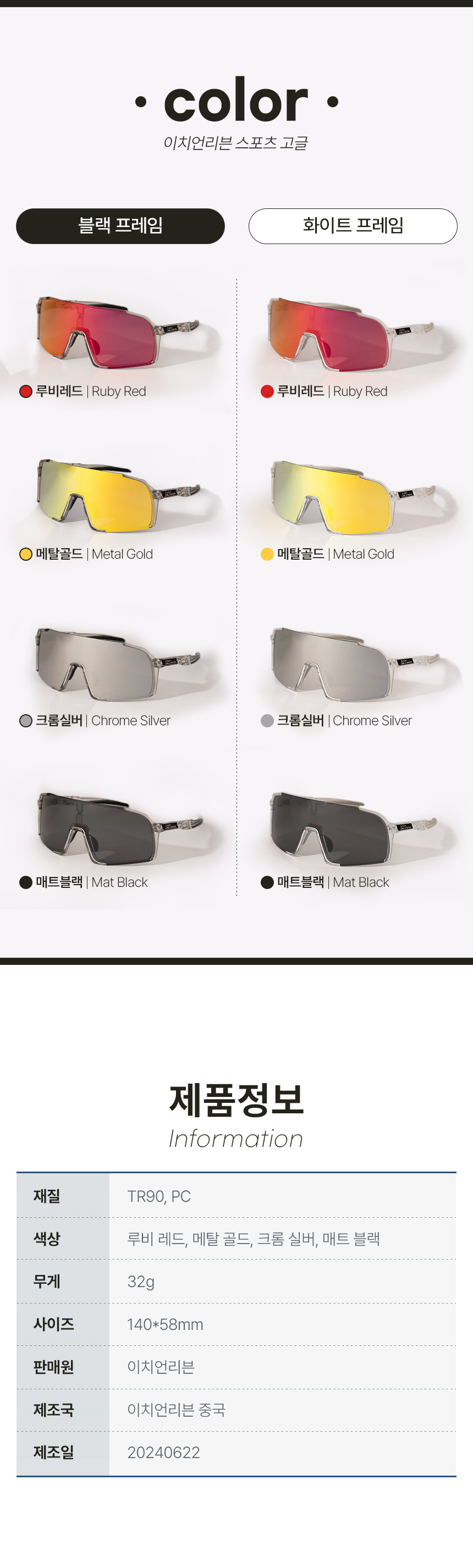 [이치언리븐]스포츠 러닝 편광 선글라스/ 자전거 고글 골프 안티포그