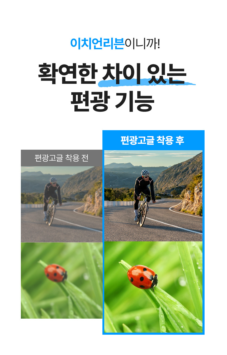 품질에 집중한 초경량 프리미엄 스포츠 고글! 편광필터로 반사광을 차단해 더 선명하고 뚜렷하게 볼수있어요~! 편광 테스트 카드로 편광률을 체험해보세요 뉴퍼마켓에서 특가로 지금 바로 만나볼수있어요
