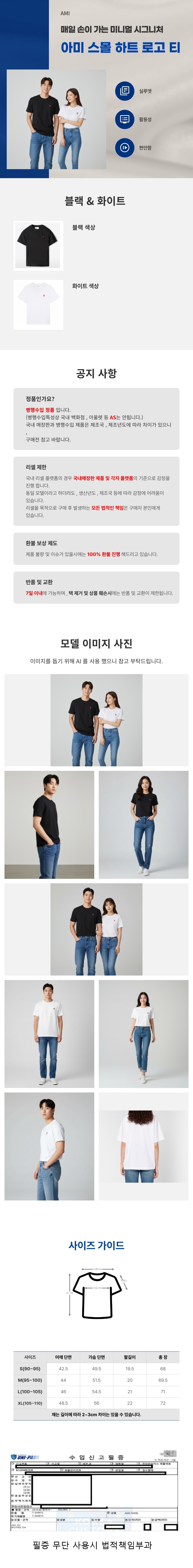제품하자가 아닌 단순변심 환불비용은 택배박스당 왕복택배비 비용을 고객님이 부담하셔야 합니다. (왕복택배비 문의시 별도 안내 진행)