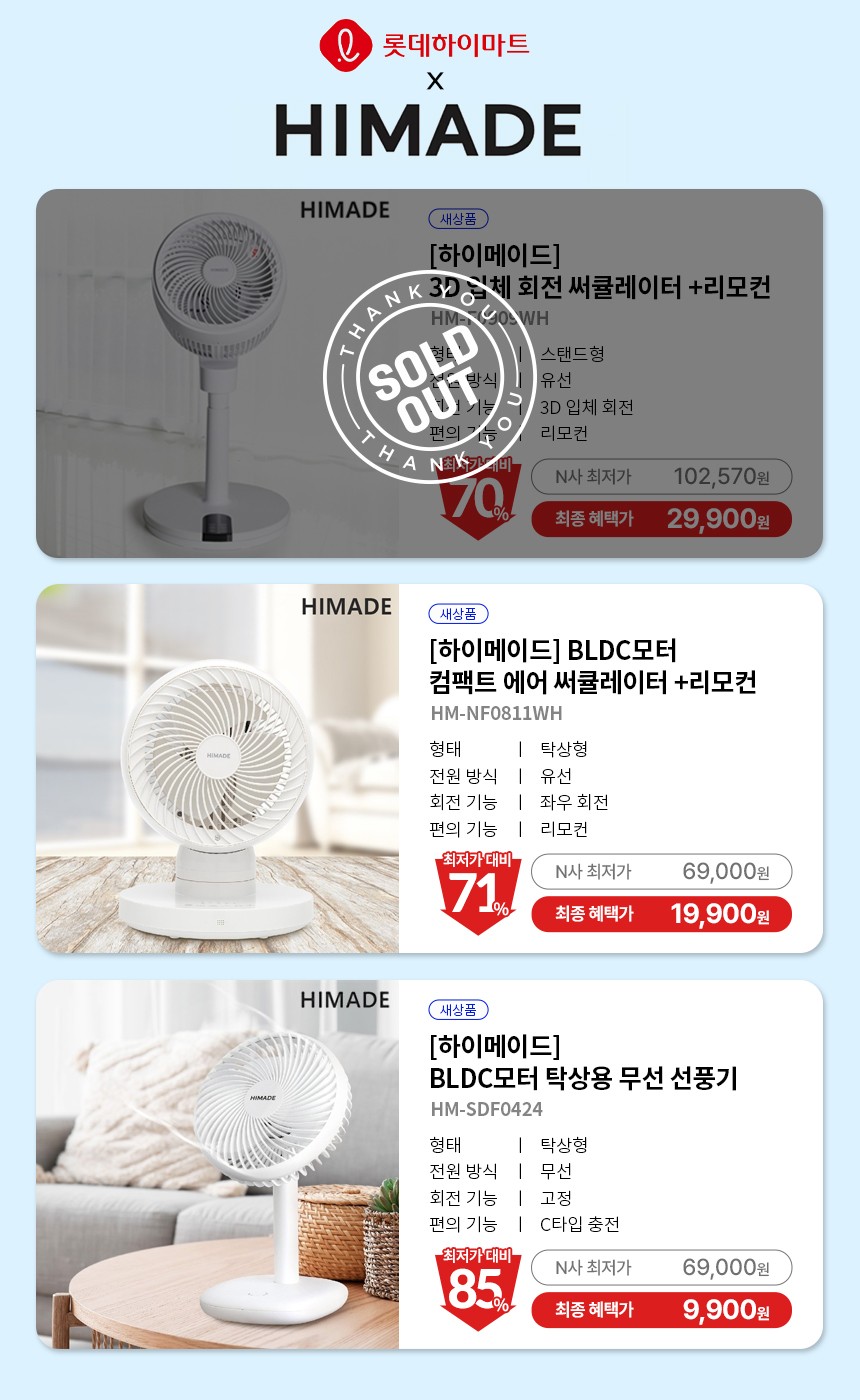 하이마트 브랜드인 하이메이드 써큘레이터 풀박스 새상품을 한정수량 신규 런칭했습니다. 3D 입체회전 바람과 리모컨이 포함된 써큘레이터를 최저가 대비 70% 할인 가격에 만나보세요.