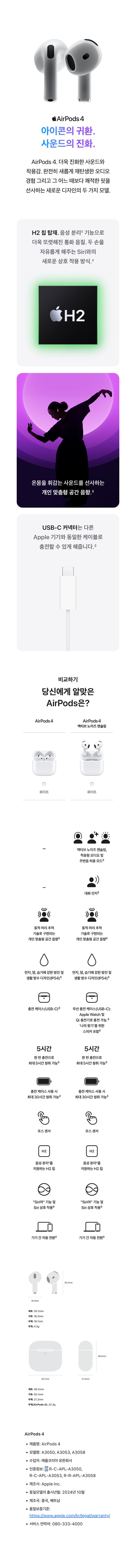 액티브 노이즈 캔슬링/Apple H2 칩/IP54 등급/Bluetooth 5.3
