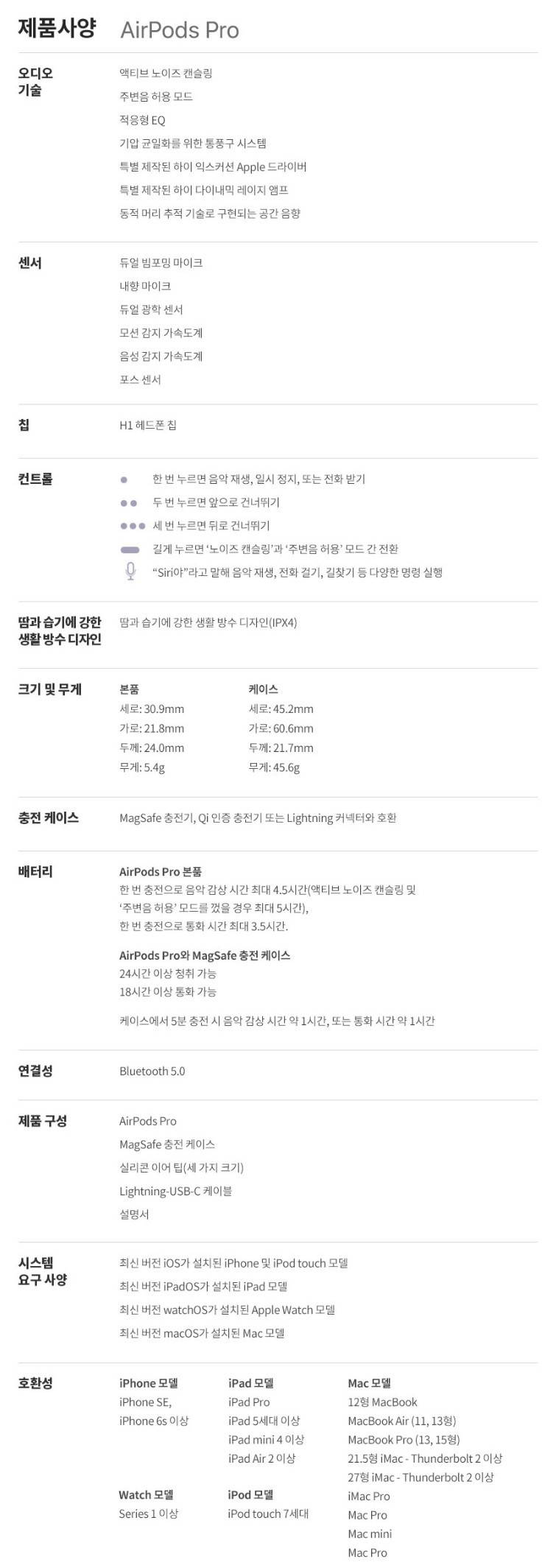 Apple 정품/충전 케이스 포함/Bluetooth 5.0/IPX4 생활방수/액티브 노이즈 캔슬링