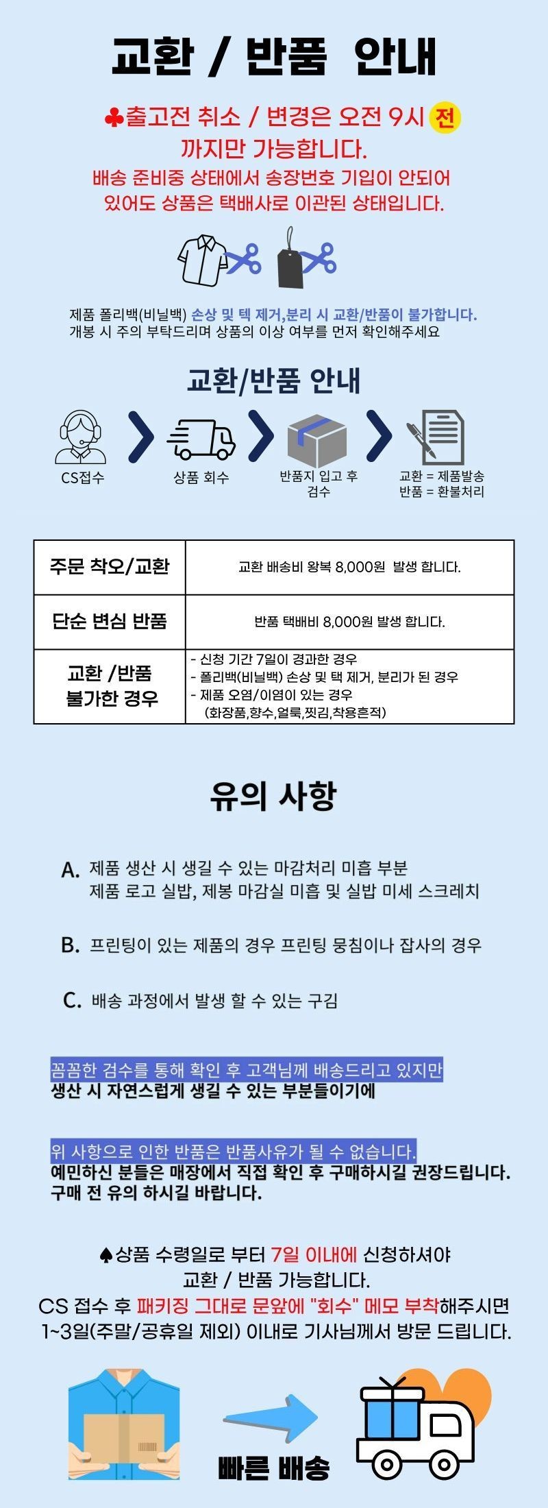 ※배송완료 후 7일까지 변심 반품이 가능합니다. 이후 변심반품 불가합니다.
