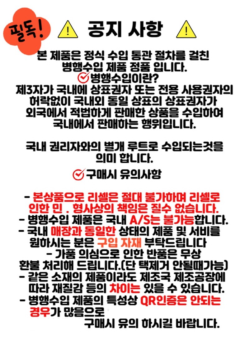 해외리퍼/단기사용/박스개봉 제품의 경우 물류검수 과정에서 외관(바디)에 미세 스크레치가 발생할 수 있으며, 이로 인한 교환 및 단순변심 반품은 불가합니다.